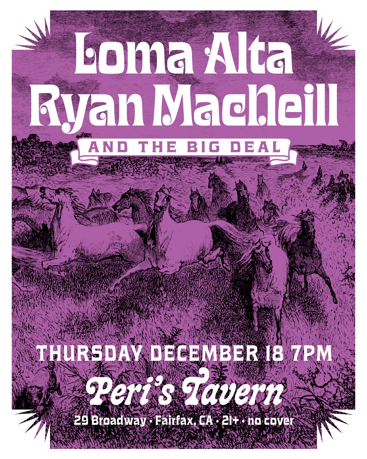 A cornerstone of the North Bay music scene, Peri’s Tavern offers an intimate, high-energy setting for a lineup that blends Americana, indie rock, and exploratory live performance. Ryan MacNeill & The Big Deal bring their signature pedal-driven sound and emotionally rich songwriting, delivering immersive sets that move from atmospheric textures to powerful, full-band peaks. Loma Alta complements the bill with a fresh, dynamic sound rooted in modern indie and alternative influences.